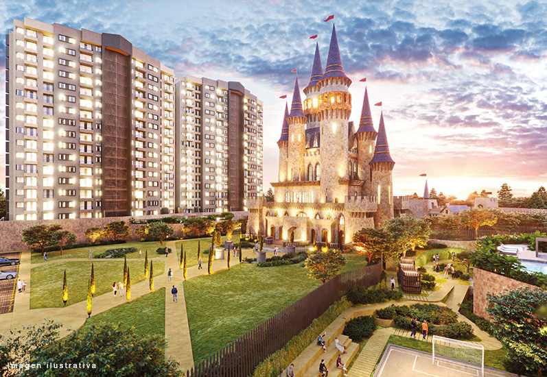 Las imágenes ilustrativas, son una representación de lo que puede ser el proyecto una vez construido, contiene elementos de apreciación artística que no comprometen al desarrollador y pueden sufrir modificaciones sin previo aviso. Proyecto entregado por etapas.